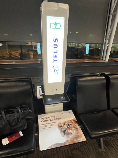 ようやくフライトの時間になりました。ゲート内にはスマホの無線給電所が!