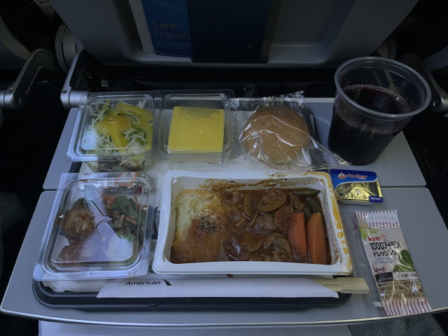 アメリカン航空の機内食。